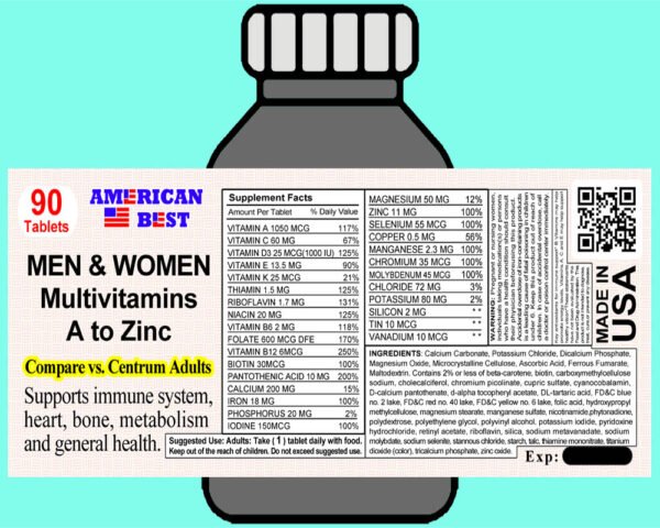 Men and Women Multi-Vitamins A to Z မှာပါဝင်တဲ့ Vitamins and Minerals တွေကိုနေ့စဉ်တမျိုးချင်းကိုစုံအောင်စားသောက်ဖို့ဆိုတာကတော့မဖြစ်နိုင်ပါဘူး၊ဒါပေမဲ့ဒီဆေးတလုံးကိုသောက်ရုံနဲ့ တနေ့တာလိုအပ်တဲ့ ဓါတ်သတ္တိအကုန်ရရှိနိုင်ပြီးထိရောက်တဲ့အကျိုးအာနိသင်ကိုခံစားနိုင်ကြမှာဖြစ်ပါတယ်။